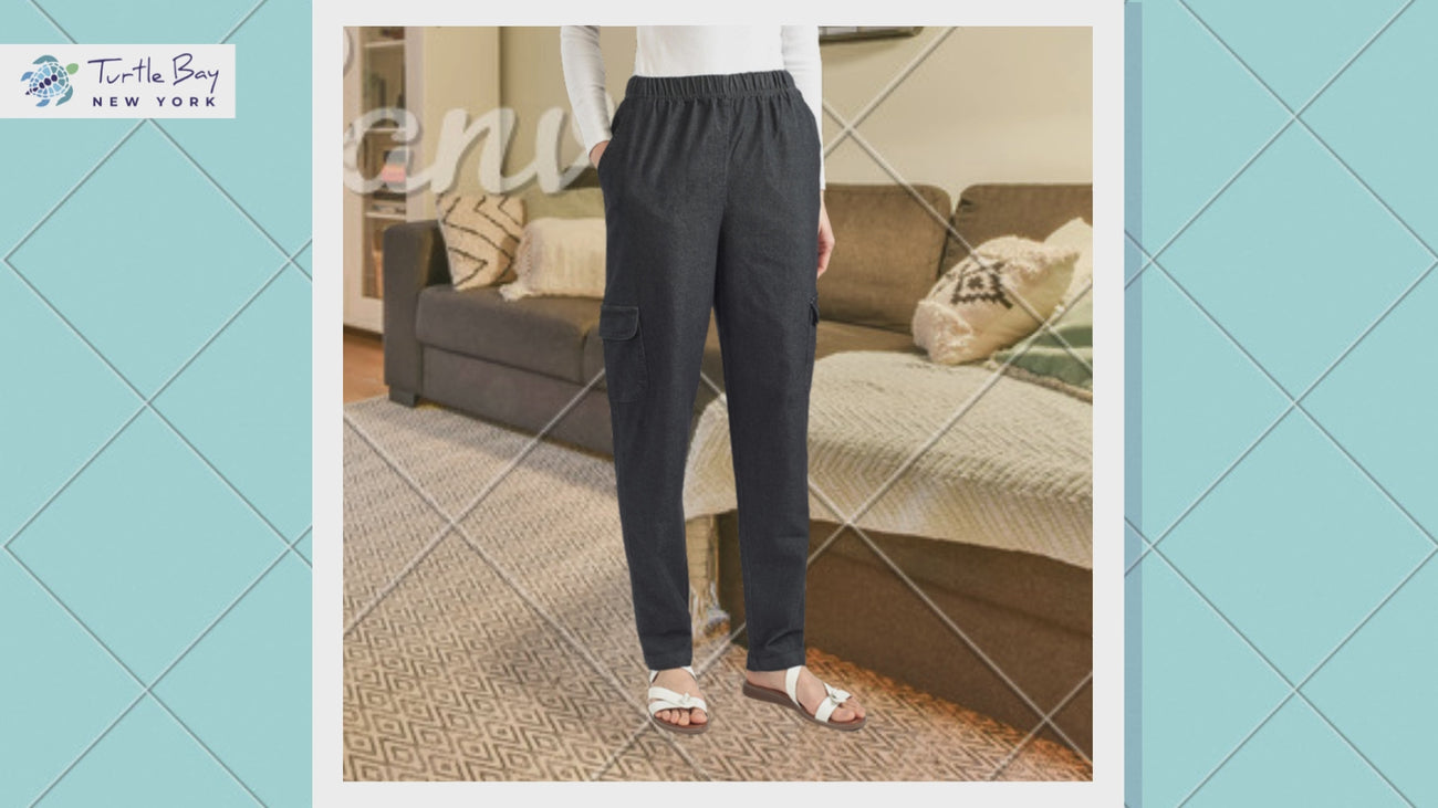 Women's Elastic Stretch Waist Casual Denim Pull-on Cargo Pants