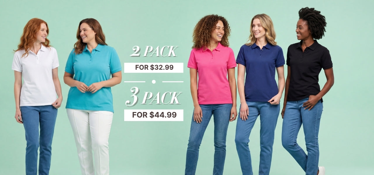 Women's Short Sleeve Pique Knit Polo Shirt in Relaxed Fit Pocketless Jersey