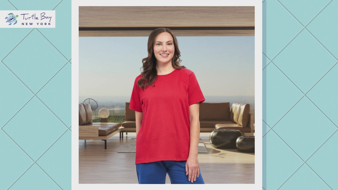 Crafted from a soft cotton blend, this Women's Textured Tee with jewel neckline combines comfort and chic style for any occasion. The crinkle texture flows gracefully over your body without clinging, creating a flattering fit. Its short sleeves give off summery vibes, while the jewel neckline adds a touch of elegance. Perfect on its own or layered under jackets and cardigans during the cooler months, this tee is a versatile addition to your wardrobe.