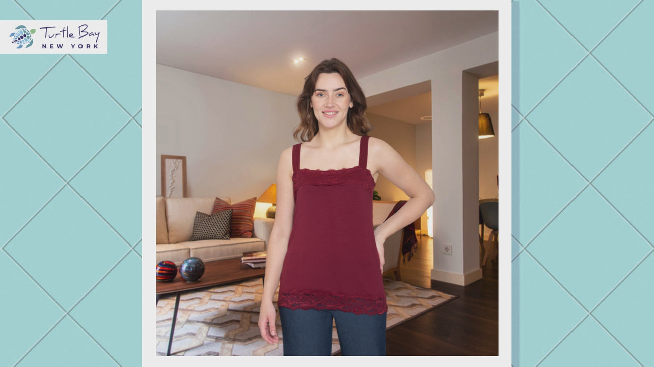 - Basic Essential : This lacy trim tank is a must have basic essential that is versatile and can be fashioned in many ways.
